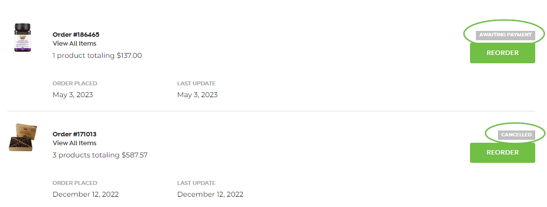 As long as you are logged into your account when you check out, you will be able to come back and check your order history at anytime. Simply select My account Orders Find the order you wish to view the details of Veiw all items You can also re-fill ...